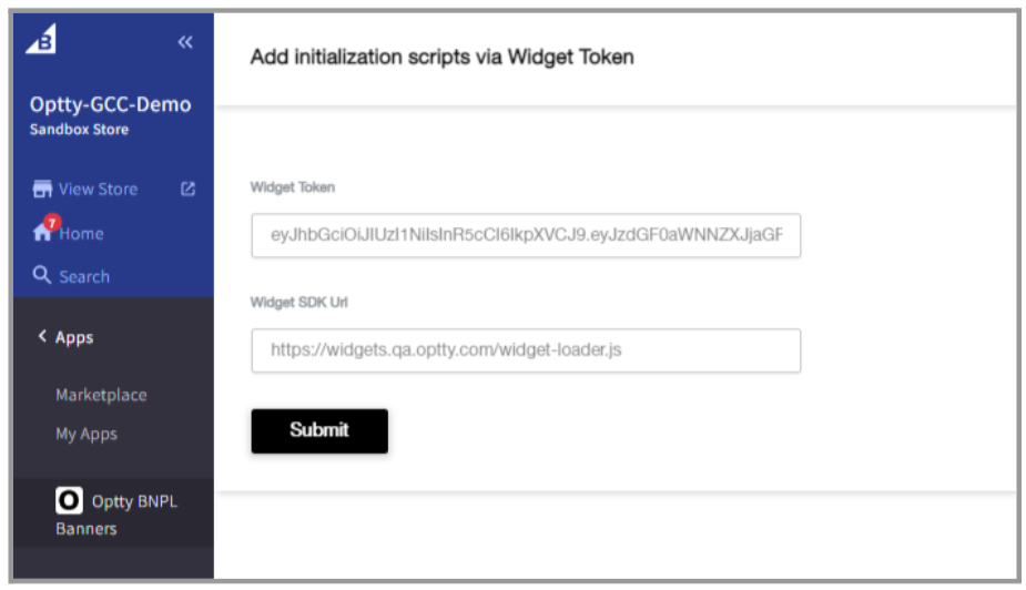 Return to your BigCommerce admin screen and enter the Widget Token into the corresponding field.&#x20;