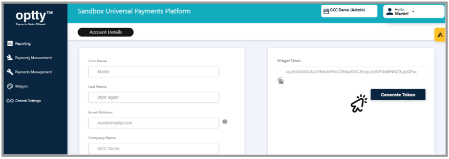 You’ll then be taken to a page to add your **Widget Token**. To obtain your widget token, you need to go back to the **Universal Payments Platform** and login.&#x20;