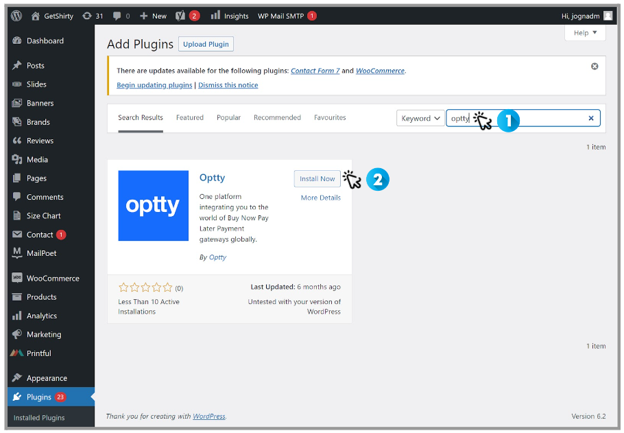 To get started, the Optty plugin needs to be installed onto your Wordpress/WooCommerce store.