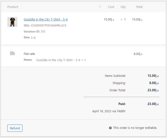 ii. Select the particular order that you would like to refund and click on the refund button at the bottom of the item details section.